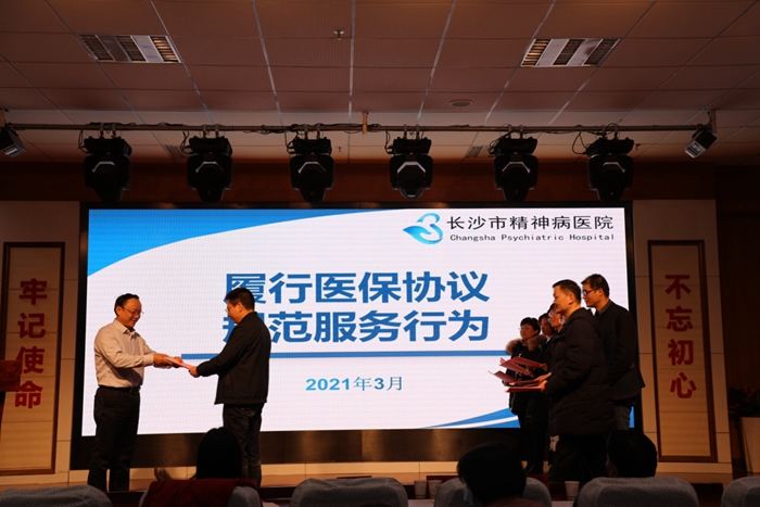 各臨床及醫(yī)技科室負責人向院長賀吉清遞交了“醫(yī)保協(xié)議規(guī)范服務承諾書”。
