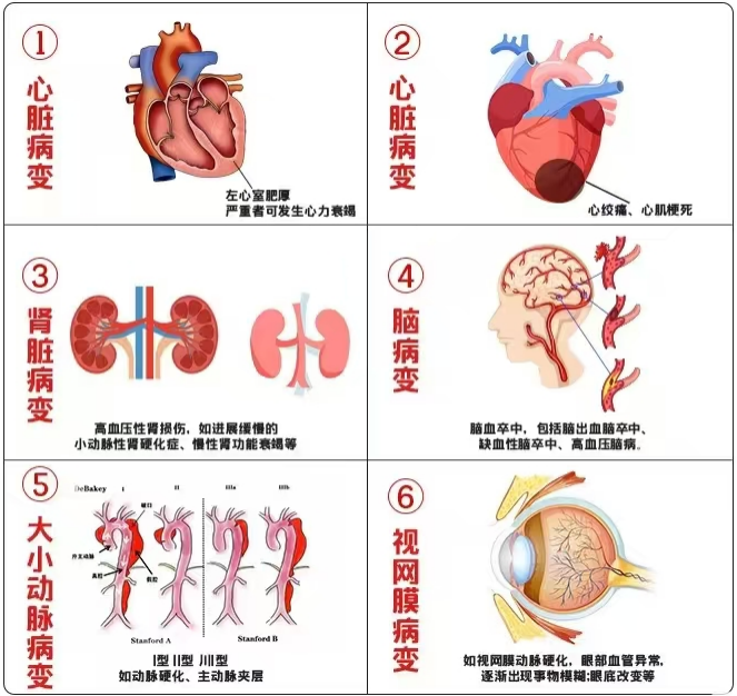 靶器官損害:心臟、血管、腎臟。